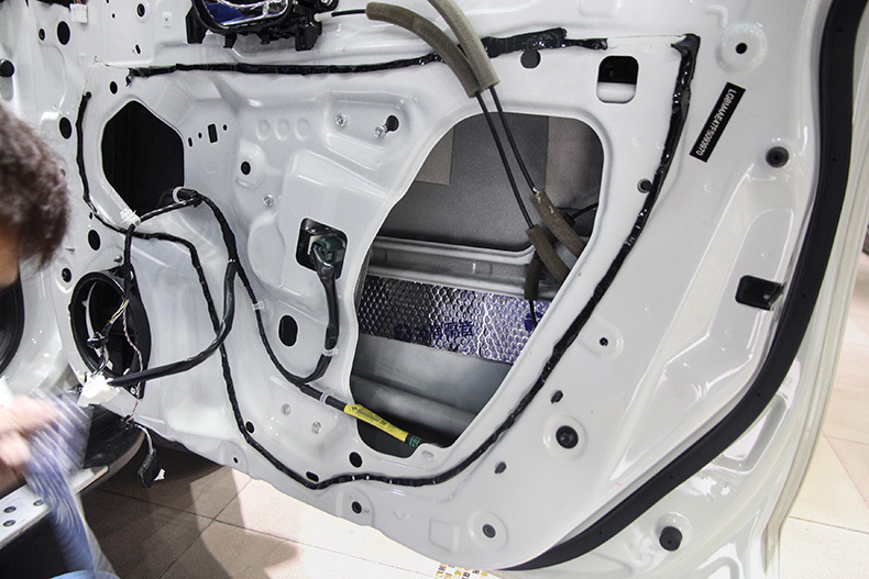 后聲場以色列摩雷瑪仕舞套裝喇叭安裝于后門板原車?yán)任?,高音則安裝在中低音喇叭旁邊