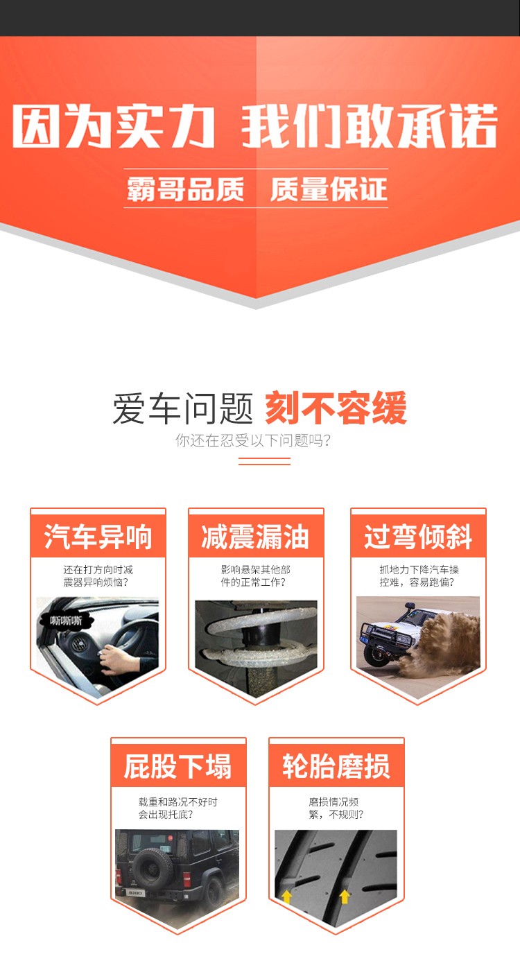 越野減震器:質(zhì)保一年!一年內(nèi)因產(chǎn)品品質(zhì)原因造成漏油,可享免費(fèi)質(zhì)保服務(wù)!