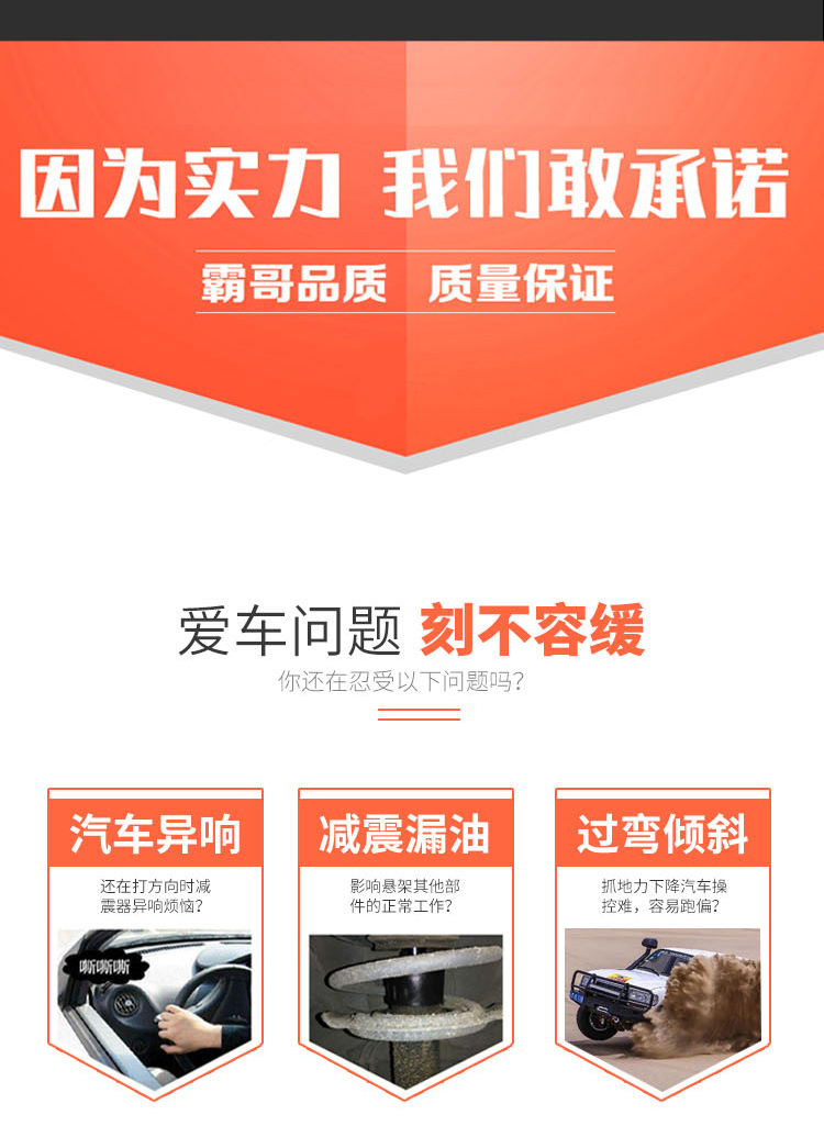 越野減震器:質(zhì)保一年!一年內(nèi)因產(chǎn)品品質(zhì)原因造成漏油,可享免費(fèi)質(zhì)保服務(wù)